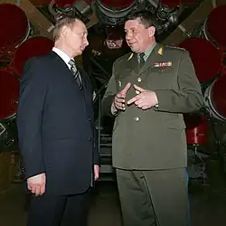 Vladimir Aleksandrovich Popovkin (Russian: Владимир Александрович Поповкин; 25 September 1957 – 18 June 2014) was a Russian statesman and military figure. He was a commander of the Russian Space Forces, then First Deputy Defense Minister of Russia, then General Director of the Russian Federal Space Agency.[1] He had the military rank of General of the Army and the federal state civilian service rank of 1st class Active State Councillor of the Russian Federation.[2]