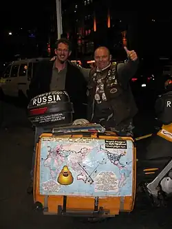 At end of 2006, he was in Sydney, Australia, after circumnavigating the Australian continent as well as a 3000 km detour to the Red Centre and touring Tasmania. Vladimir was met by members of the RMOA Australia and presented a custom silver "Round the World" ring.