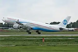 On 6 January 2009, ILFC announced the airline's lease of three used Airbus A330-300 aircraft. The first aircraft was delivered in May 2009, after coming off lease from Aer Lingus. The lease term was for 7 years.[26] The aircraft entered service on 9 June 2009, flying between Vladivostok and Moscow.[27] The A330 seated 327 people and was mainly used to fly between Vladivostok/Khabarovsk and Moscow. The second A330 was delivered in October 2009, while the third arrived in March 2010.[28]