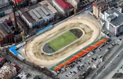 The Avangard Stadium is located on Ulitsa Kapitana Shefnera, 2, which is just north of the Zolotoy Rog. The stadium was constructed between 1960 and 1962 but was not used for speedway from 1986 to 1998. It re-opened for speedway in 1999 on a restored track.[3]