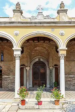 Vlatades Monastery or Vlatadon Monastery (Greek: Μονή Βλατάδων) is a monastery in Ano Poli, Thessaloniki, Greece. Built in the 14th century during the late era of the Byzantine Empire, it is a UNESCO World Heritage Site along with 14 other Paleochristian and Byzantine monuments of Thessaloniki because of its Byzantine architecture and importance of Thessaloniki during early and medieval Christianity.[1] It is believed to have been built on the former site of Jason's house.[2] In 2005, a manuscript of Galen's Peri Alypias was discovered in the monastery's library.[3]