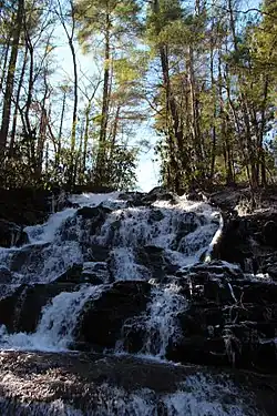 The park features streams, a waterfall, and Lake Trahlyta.[3] At 2,500 feet (760 m) elevation it is one of Georgia's highest altitude state parks. The mountainous habitats surrounding the lake support a wide assortment of plants and animals.