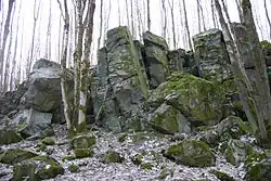 On the northern slopes of the Taufstein are large stone runs of basalt.