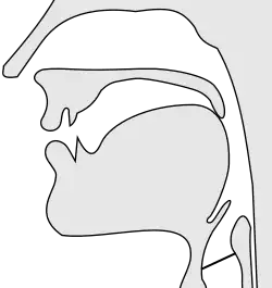 - ^ Instead of "pre-uvular", it can be called "advanced uvular", "fronted uvular", "post-velar", "retracted velar" or "backed velar". For simplicity, this article uses only the term "pre-uvular".