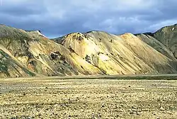 A volcanic desert is an area largely or completely devoid of vegetation because of volcanic activity. The term is usually applied to larger areas such as the Highlands of Iceland, the Rangipo Desert in New Zealand or Cordón Caulle in Chile. Occasionally though, it is used for relatively small regions such as the Kaʻū Desert on the island of Hawaiʻi.[1]