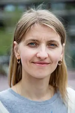 She has been actively editing Wikipedia since 2009 under the pseudonym "Хомелка" (Khomelka). In 2010, she became an administrator of the Belarusian Wikipedia.[3] She mainly writes about the history and culture of Belarus, prominent figures, architectural monuments, and Belarusian flora and fauna.[1] More than twenty of her articles have been awarded "good" or "featured article" status.[3] She is the author of thousands of articles and has made hundreds of thousands of edits.[2][4] She represented the Belarusian Wikipedia at Wikimania 2014 in London.[1]