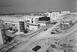 The caissons were prefabricated using precast concrete in a casting basin next to the locks. The embankments were constructed between 1967 and 1968, allowing the precast caissons to be placed. With the caissons sunk and completed, the final dam body was constructed, with the crown located 6 metres above sea level.[11]