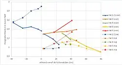 The effects of the construction of the Volkerakdam on tide levels in the area of the lower rivers has been identified at several locations around adjacent water bodies, as shown in the table and graph below. The changes to the tidal range were dependent on the direction and distance from the dam to the station location. In areas south of the dam, the tidal range increased considerably, whereas in areas on the north side the tidal range decreased. Towards Rotterdam, the influence of the Volkerakdam closure on tides became smaller.[3]