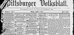 - ^ "The Pittsburg Volksblatt Sold". Wheeling Sunday Register. 5 July 1885. p. 1.