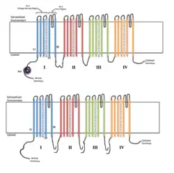 - ^ Catterall WA (2010). "Ion channel voltage sensors: structure, function, and pathophysiology". Neuron. 67 (6): 915–28. doi:10.1016/j.neuron.2010.08.021. PMC 2950829. PMID 20869590.