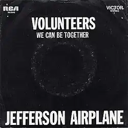 "Volunteers" is a Jefferson Airplane single from 1969 that was released to promote the album Volunteers two months before the album's release. It was written by Marty Balin and Paul Kantner. Balin was woken up by a truck one morning, which happened to be a truck with Volunteers of America painted on the side.[2][1] Balin started writing lyrics down and then asked Kantner to help him with the music. The music is similar to that of the single's b-side "We Can Be Together" and was based on a bluegrass riff that David Crosby had shown Kantner.[2][1] "Volunteers" also has a similar chord structure and rhythm to "We Can Be Together".[2]