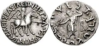 - ^ Gardner, Percy, The Coins of the Greek and Scythic Kings of Bactria and India in the British Museum, p. 99