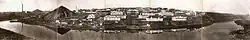 Large coal fields were discovered in the Pechora area by T.C Bornovolokov in 1809 and various other geologists and explorers from 1828 to 1866. E.K Hoffman, a wealthy entrepreneur, wanted to develop the area for coal mining but couldn't due to insufficient funds.[1][2] In 1930 the geologist Georgy Chernov discovered substantial coal fields by the river Vorkuta. Chernov's father, the geologist Aleksandr Chernov, promoted the development of the Pechora coal basin, including the Vorkuta fields, and wrote about it in 1924.[3][4] This discovery signaled the start of the coal-mining industry in the Komi ASSR. (At the time only the southern parts of the field were included in the Komi ASSR. The northern part, including Vorkuta, belonged to the Nenets Autonomous Okrug of Arkhangelsk Oblast.) In 1931 a geologist settlement was established by the coal field, with most of the workers being inmates of the Ukhta-Pechora Gulag camp. The Vorkuta camp was established by Soviet authorities a year later in 1932 for the expansion of the Gulag system and the discovery of coal fields by the river Vorkuta, on a site in the basin of the Pechora River, located within the Komi ASSR of the Russian SFSR (present-day Komi Republic, Russia), approximately 1,900 kilometres (1,200 mi) from Moscow and 160 kilometres (99 mi) above the Arctic Circle. The town of Vorkuta was established on January 4th, 1936 to support the camp, which was constructed to exploit the resources of the Pechora Coal Basin, the second largest coal basin in the Soviet Union. The camp was constructed mainly for coal mining and forestry. There were approximately 132 sub-camps in the Vorkuta Gulag system during the height of its use in the Soviet prison system. Town status was granted to Vorkuta on November 26, 1943.[3]