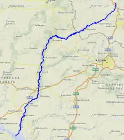 The river's source is on the western slopes of the Central Russian Upland north of Belgorod. Within Ukraine it flows through the Dnieper Lowland, passing through Sumy Oblast, and then crossing Poltava Oblast. It has a length of 464 kilometres (288 mi), and a basin area of 14,700 square kilometres (5,700 sq mi).[1] The river is the 15th longest in Ukraine stretching for 348 kilometres (216 mi).