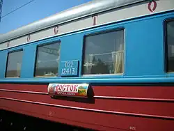 019/020 Vostok (Russian: Восток) is an international train operated by RZD Moscow which runs between Moscow Yaroslavl and Beijing. The train number is 019Ч/020Щ in Russia and K19/20 in China. It commenced operations from 31 January 1954. The train is operated by RZD Moscow. [2]