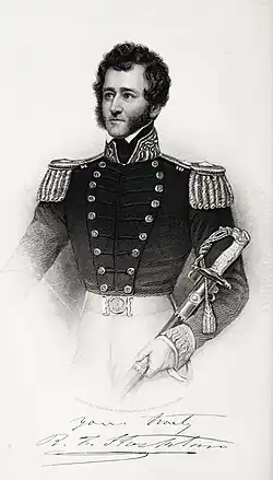 Internal unrest and limited resources kept the Mexican government from utilizing and managing distant California, from which it had largely withdrawn after 1834 or been forcibly expelled by 1846.[52] Powerful Californios in the distant territory rejected various governors sent by central Mexico to rule them. The Californios declared themselves independent unless Mexico returned to prior constitutional guarantees. However, they lacked the ability to defend the territory against even a small force on their own.[53] Mexico offered to sell California to Great Britain, hoping to make Alta California a British protectorate against the United States, but Britain was reluctant to risk another war with the United States. An additional uncertainty was the effect John Sutter's financial challenges might have in de-stabilizing northern California. Potential international complications could arise if his finances collapsed, an outcome that was deemed highly likely given his history. If Sutter could not fulfill contractual obligations in the purchase of Fort Ross from the Russian-American Company, he could take down important Californios' fortunes with him and re-introduce Russian dominion from the coast into the Central Valley.[54] Sutter resisted government attempts to control him and the looming risk he presented, falsely claiming that he would have the military backing of France if Californios attempted to interfere with him.