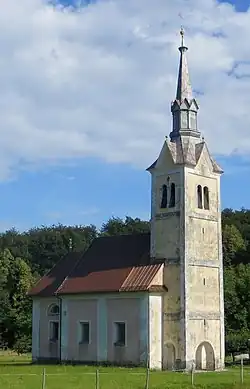 The local church is dedicated to the Assumption of Mary and belongs to the Parish of Semič. It dates to the mid-18th century.[6]