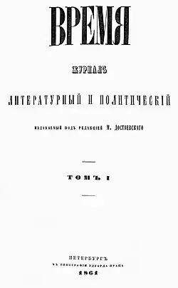 Vremya (Russian: Вре́мя) (English: Time) was a monthly magazine published by Fyodor Dostoevsky under the editorship of his brother Mikhail Dostoevsky. Due to his status as a former convict, Fyodor himself was unable to be the official editor.[1]