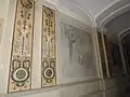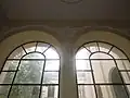 The facade is completely preserved. The furniture, made after the designs of Dragutin Inkiostri, has been partially preserved and several pieces (e.g., a chair from the Minister's cabinet) are now in the Ethnographic Museum and the Museum of Applied Art in Belgrade.[7] Most of the original compositions on the walls have been destroyed over time. However, the wall ornaments in the gateway towards the courtyard are original as they were accidentally painted over after the Second World War. They were discovered by accident in 1963, cleaned, and the allegoric compositions of religion, education, history and art can be seen on them.[8] They were restored in 1997. Above the entrance to the building, the emblem of the Kingdom of Serbia[9] was placed, embedded into the Art Nouveau shaped two-colored, red and white facade, with originally blended motifs from Serbian Medieval architecture, elements of Serbian national tradition, as well as the decorative motifs from the European secession. The purpose of this object, which is a testimony to the continuity of the culture of education, has been preserved for one hundred and thirty-five years.