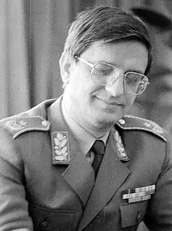 Vuk Obradović (April 11, 1947 in the village of Kondželj, Yugoslavia – February 13, 2008 in Belgrade) was a Serbian general and politician. He was one of the leaders of the Democratic Opposition of Serbia in the Bulldozer Revolution in October 2000.