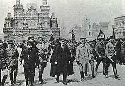 After returning to Russia, he participated in the October Revolution and was an agitator among captured POWs. He was one of the founders and leading members of the Yugoslav Communist Group within the Russian Communist Party (Bolsheviks).[1] Marković was the editor of the magazine Svetska revolucija (World Revolution) which was printed in Moscow in the Russian, Slovene, Serbo-Croatian and Bulgarian languages.[4] In addition to that, he served as president of the department of South Slavs in the Commissariat of Peoples in 1918, and worked in the Comintern on questions concerning the Balkans in 1919.[3] In late 1919, he served as a lector and agitator in the All-Russian Central Executive Committee.[2]