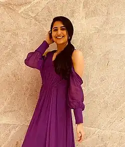 Vyoma Nandi is an Indian Canadian actor and model who works primarily in the Gujarati film Industry.[1] She made acting debut in 2016 with Telugu film Marala Telupana Priya as the lead actress. In 2017, she made her Gujarati film debut with crime thriller Cash on Delivery opposite Malhar Thakar. She went on to appear in several commercially successful Gujarati films, including Gujjubhai-Most wanted (2018), Oxygen (2018), Luv Ni Love Storys (2020).[2] She won Best Debut award at the Gujarati Iconic Film Awards for her performance in Cash on Delivery.