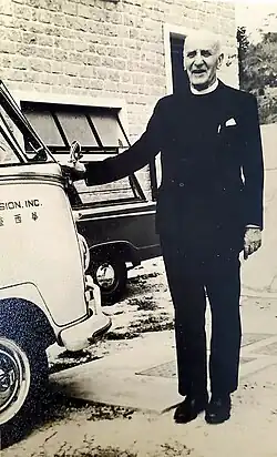 Vyvyan Donnithorne was of Cornish descent.[1] He was educated at Christ's Hospital, Clare College, Cambridge and Ridley Hall, Cambridge.[2] After wartime service[3] in the Royal Hampshire Regiment[4] he was ordained in 1919. He was a member of the Church Missionary Society in Szechwan (now romanized as Sichuan), West China from 1920 to 1949.[5][6] He served as pastor in the Gospel Church of Hanchow, since 1929.[7] He was a chaplain in the Canary Islands, Spain from 1949 to 1953.[8] In retirement, he lived in Hong Kong.[9] He died in 1968 and was buried in Hong Kong Cemetery.[10]