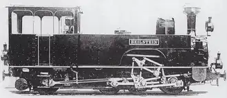 The three tank locomotives were derived from the Ts 4 and adapted to the gauge of 750 mm (2 ft 5+1⁄2 in). The wheelbase, however, was extended to 4.5 m (14 ft 9+1⁄4 in). Unlike the meter-gauge Ts 4, the fourth axle under the driver's cab was positioned at a large distance from the third axle. The locomotives had two inside cylinders arranged at an angle. They worked on the second axle, which was firmly located in the outer frame and which was designed without flanges. The valve gear, the two valve boxes with the slide valves and the motion were attached outside of the frame. The valve gear was of the Klose type and therefore had levers arranged according to the pattern of a double parallelogram. It was located below the large cutout in the water tank above the second axle. The first and fourth axes were swivelled in via the third axle, which could be moved laterally by ±31 mm (1+7⁄32 in), according to the radius of the track curve by shortening or lengthening the coupling rods using the levers in the parallelograms according to the curve.