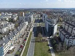 The Wąwozowa Street (Polish: Ulica Wąwozowa) is one of the principal streets of the Warsaw's residential neighborhood of Kabaty in the Ursynów district. It runs along the east–west axis, linking the Rosoła Street with the Stryjeńskich Street. The name comes from gorges (Polish: wąwozy) bordering escarpment of the Vistula,[1] and was given in 1978 by the National Council of the Capital City of Warsaw resolution.[2]