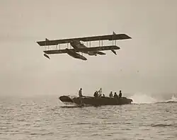 A new type of vessel, which promises to revolutionize water craft and which takes the same place on the water that the automobile does on land - Scientific American 26 September 1914. In September 1914, a 54 foot Sea Sled design,[2] with an internal steel frame designed by Hickman's Chief Engineer E. F. Tomlinson, four surface piecing propellers, a single 18" torpedo, 3 pound Hotchkiss gun, and was proposed to the US Navy as the first high speed motor torpedo boat, the forerunner of the famous World War 2 PT boat. This vessel was later built in 1918 as US Navy vessel C-378 but was cancelled following the end of World War 1 after completing initial high speed trials recording a top speed of 37 knots at 1400 HP and a sustained speed of 34.5 knots in a winter northeaster storm with 12 to 14 foot seas.[3] Various version of these steel framed Sea Sleds were used by both the US Navy and Army as rescue boats starting in 1913 up through the Second World War.[2]