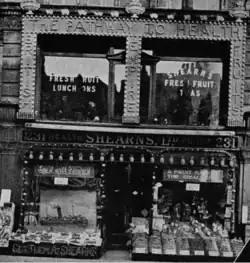 Shearn's father Benjamin Shearn (1829–1913) was the owner of the first fruitarian restaurant in London, established in 1905.[3] The restaurant was positioned above his fruit store at 231-234 Tottenham Court Road, that were both managed by Shearn.[4][5] The ground floor was a florist and greengrocer and the two upper floors belonged to the restaurant.[5] The restaurant served nutmeat.[5] Alfred Perlès described it as "probably the best vegetarian restaurant in the world, with the emphasis on a fruitarian diet".[6] Customers would pay two shillings to consume as much fruit and nuts that they could eat with a cup of coffee, cream and brown bread and butter.[6] Shearn is credited with introducing grapefruit and "fruit lunch" to the British public.[7] Shearn's company advertised itself as the "World's Largest Fruitarian Stores".[8]