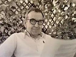 ![]() Daniel reading in his garden, late 1980s | |