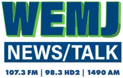 WEMJ (1490 AM) is a radio station broadcasting a news/talk format. Licensed to Laconia, New Hampshire, United States, the station is owned by Binnie Media and licensed to WBIN Media Co., Inc. WEMJ features programming from Fox News Radio.[4] WEMJ is known on-air as 107.3 WEMJ (after its translator frequency). It is part of the "Pulse of NH" trimulcast with 107.7 WTPL in the Manchester area and 98.1 WTSN in the Seacoast Region.