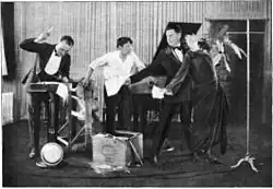 A few months after WGY began broadcasting, Edward H. Smith, director of a community theater group called the Masque in nearby Troy, suggested to Kolin Hager that WGY carry weekly 40-minute long adaptations of plays. A troupe was formed known as the WGY Players performing as radio's first dramatic series.[20] On August 3, 1922, they presented Eugene Walter's 1908 play The Wolf, the first of forty-three dramatizations performed during the 1922-1923 season. Smith became a pioneer of radio drama sound effects during this first play when he slapped a couple of two-by-four boards together to simulate the slamming of a door.[21] Initially the actors wore costumes and makeup on the theory that this would enhance performances, but the practice was soon discarded as unneeded. The WGY Orchestra was used to provide music between acts. Response was immediate, with the station reporting that the broadcast resulted in its receiving more than two thousand letters.[22] On November 9 the Players presented on The Sign of the Four starring Edward H. Smith as Sherlock Holmes,[23] and the world's only consulting detective joined the growing number of "disembodied voices floating through electromagnetic heaven."
