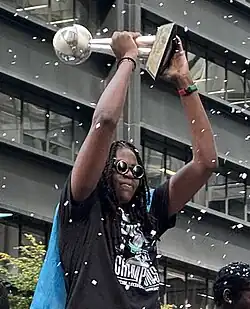 During the first four years of the league, the Houston Comets' Cynthia Cooper won the award four consecutive times. The Los Angeles Sparks' Lisa Leslie won back-to-back in the subsequent two seasons. No other players have won the award in consecutive seasons, but Diana Taurasi, Sylvia Fowles, and Breanna Stewart have won the award twice. While some teams have won multiple championship since the dynasty years of the Comets and the Sparks, the match-up usually resulted in different MVPs. For example, in the Detroit Shock's three wins over six years, three different players won the award. As of 2024, there have been three non-American Finals MVPs – Lauren Jackson of Australia (2010), Emma Meesseman of Belgium (2019), and Jonquel Jones, a Bahamian who has represented Bosnia and Herzegovina internationally (2024).