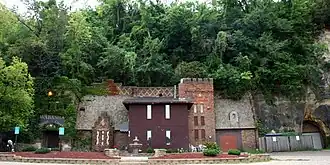 The Wabasha Street Caves are a series of manmade caves dug into sandstone cliffs on the south side (west bank) of the Mississippi River in Saint Paul, Minnesota.[1] The caves are in the city's West Side neighborhood, just across the river from Downtown Saint Paul. The caves have been used for storage, growing mushrooms, as a mobster hideout, as speakeasies, and as an entertainment and tourist venue. For the past 30 years, they have hosted Swing Night every Thursday night with professional live Big Bands and vocalists, playing music of the old Tommy Dorsey, Glenn Miller, Count Basie, Duke Ellington Big Bands. Dances are open to the public and draw crowds in the hundreds. The Wabasha Street Caves also provide historical tours and Murder Mystery Tours.