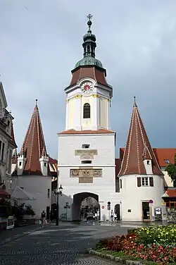 Steiner Tor is a-preserved gate in the city of Krems, originally built in the late 15th century but refashioned in the Baroque style.[29] It is considered the symbol of the city. Until the last third of the 19th century, the city of Krems was surrounded by a wall. This was systematically razed, and three gates were also removed. From 2005, celebrating the 700-year anniversary of the city rights, the Steiner Tor was restored as much to its original as possible.