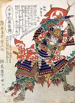 Wada Koremasa (和田 惟政; 1536–1571) was samurai and senior retainer of the Ashikaga Shogunate.[1] The Wada clan were a powerful ninja family in the Kōka ikki in Kōka District until Koremasa was granted land in Settsu Province in 1568 as a reward for his support for Ashikaga Yoshiaki and Oda Nobunaga.