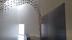 The final room in the exhibition features an artwork of glass with video projections showing the flight of birds.
