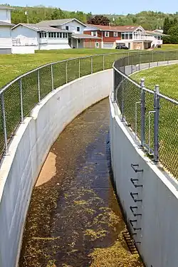 There are a number of diversions and debris structures on Wadham Creek upstream of Plymouth. In Plymouth, the creek flows through both open channels and culverts.[5] Wadham Creek has a dam above where it crosses Shawnee Avenue.[6] The dam is 32 feet (9.8 m) high.[7] Mine subsidence affects the dam, but as of 2009, Luzerne County considered the mitigation of this problem to be low-priority.[6]