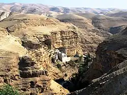 Wadi Qelt (understood as the entire course of the stream, not just the lower course actually called Wadi Qelt by Arabs) contains monasteries and other old Christian locations.[1] According to tradition, the first monastic settlement of the Judaean desert, the Pharan lavra, was established by St Chariton the Confessor towards the end of the 3rd century in upper Wadi Qelt,[12] an area known to the Greek Orthodox as Pharan Valley.