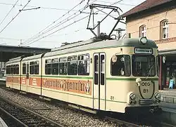 Waggonfabrik Rastatt (English: Rastatt Coach Factory) is a German public-limited company based in Rastatt in the state of Baden-Württemberg in southwestern Germany. Its chief products are tramway vehicles and railway coaches and wagons. The firm was founded in 1897 and built, for example, tramways for the Upper Rhine Railway Company (Oberrheinische Eisenbahn-Gesellschaft or OEG), Karlsruhe Transport Company (Verkehrsbetriebe Karlsruhe GmbH) and Stuttgart Tramways (Stuttgarter Straßenbahnen AG). In its early days it also built rolling stock for the Grand Duchy of Baden State Railways.