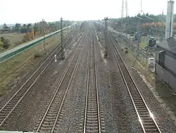 The Waghäusel Saalbach–Graben-Neudorf railway is a 7.94 km long[3] railway north of Karlsruhe, Germany. It connects the Mannheim–Stuttgart high-speed railway with the Rhine Railway and is used by scheduled trains between Mannheim and Karlsruhe.
