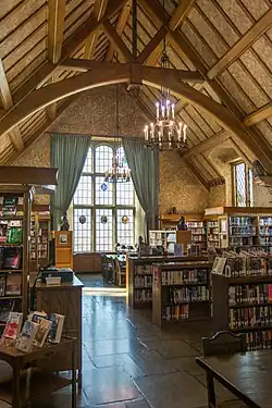 Initially, the library held 2,000 volumes with shelving space for about 20,000 volumes.[3] Paintings of Anna and Adam Wagnalls adorn the walls. Massive oak tables, comfortable chairs, restful furnishings and artistic decorations are part of the reading room.[4]