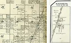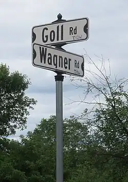 Wagner was gradually settled by Swedish, French-Canadian, German, Dutch, Polish, and Czech immigrants.[3] Wagner formerly had a railroad depot, two small hotels, a cheese factory, sawmills and a shingle mill, a dance hall, taverns, and a general store. The Goll schoolhouse stood south of the settlement. In 1908 a fire destroyed all of the structures west of the railroad, including the mills, after which the settlement stagnated.[3] Wagner was a stop between Goll and McAllister on the Wisconsin & Michigan (W. & M.) Railway line from Bagley Junction to Iron Mountain.[4] The rail line through Wagner was discontinued in 1938, when the tracks were torn out and the rolling stock sold off.[4][5][6] A post office was established in Wagner in 1897, and it operated until 1934.[7]