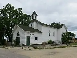 Before the church was built in Wagner, masses were initially held by Father Joseph Hemmer (1870–1958) in the 1890s and then regularly celebrated at the Bernardy residence by Father Joseph John Fox. A congregation dedicated to Saint Cecilia was established in 1905, and masses were held in various residences in Wagner. Land for a church was purchased in 1917, and a $500 donation was received in memory of Edward M. Dougherty, due to which the decision was made to dedicate the new church to Saint Edward the Confessor in 1918. The church was a "mission church" (a chapel of ease) subordinated to the parish church in Walsh, and it was built by moving and combining two taverns. The main and side altars, altar stone, and linens were brought from the old church at Walsh. Land for the church cemetery was purchased in 1922. The church was moved further from the road in 1924, when a basement was also added, and electricity was installed in 1948. A new altar for the church was built by Gene Rolkosky in 1966.[3] The church was closed and the property sold in 2004.[8]