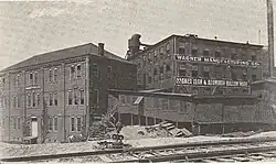 The Wagner Manufacturing Company was founded by the brothers Milton M. and Bernard P. Wagner in Sidney, Shelby County, Ohio.[1] The architect Joseph Altenbach started construction of the Wagner manufacturing complex in 1890. He was a friend of the family head Mathias Wagner, and was responsible for many of the major buildings in Sidney during that period.[2] The company was incorporated in 1891. The principal owners were Bernard, Milton, Louis, and William Wagner.[3] The brothers were joined by R.O. Bingham, who had in the past worked at the Marion Stove Works and the Sidney Manufacturing Company, who became superintendent of the company.[1]