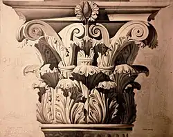 This drawing of a Corinthian capital from the Temple of Vesta in Rome was submitted by al-Hariri as part of his application for admission to the Beaux-Arts. Visible below the title at bottom left is the designation, in script, "Atelier Pontremoli-Leconte".