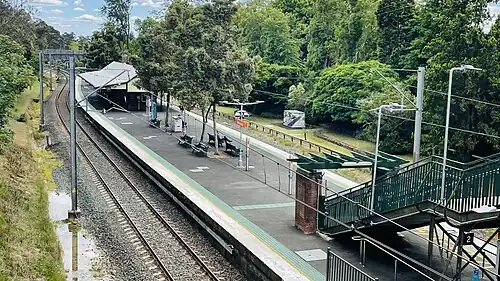 Wahroonga railway station is a heritage-listed suburban railway station located on the North Shore line, serving the Sydney suburb of Wahroonga. It is served by Sydney Trains T1 North Shore Line services. It was built from 1890 to 1910 by E. Pritchard & Co., contractor (first 1890 line). It is also known as Wahroonga Railway Station group and Pearce's Corner; Noonan's Platform. The property was added to the New South Wales State Heritage Register on 2 April 1999.[3]