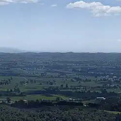 The plains can be divided roughly into the Middle Waikato Plain (also Middle Waikato Basin[2] Hamilton Basin [3]), extending in all directions around the city of Hamilton, and the Lower Waikato Plain, nearer the river's mouth.[4] The two are broken by the rough, low-lying hills of the Hakarimata Range, between Ngāruawāhia and Huntly, and the Taupiri Range.[3]